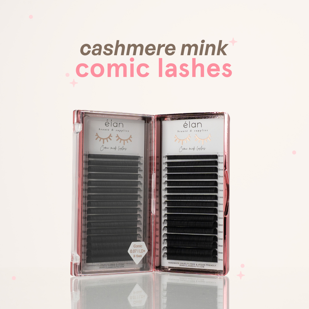 Create manhua, wispy, and wet lash sets with ease like never before! Featuring 3 different lengths in each row, Cashmere Mink Comic lash trays create a naturally tapered look for multi-dimensional, textured sets without the hassle. Made with PBT fibers for a cashmere finish, Comic Lashes are artist approved for creating stunning, soft, and voluminous lash extensions looks and comfort for your clients for long lasting results.