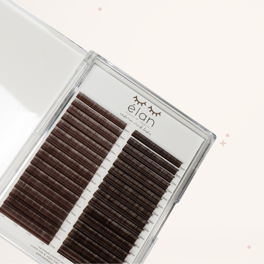Big Boi Cashmere Mink lash extension trays are now available in Dark Brown - perfect for ultimate natural lash upgrade! Artist approved for creating a natural and soft look, these PBT lashes ensures a cashmere finish and comfort for your clients for long lasting results. With 32 rows (16 rows of 0.03 and 16 rows of 0.05), our best seller Big Boi Cashmere Mink trays is an affordable option to try brown lashes!